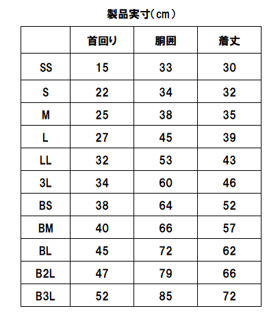 大型犬サイズはBから始まるサイズ表示です。