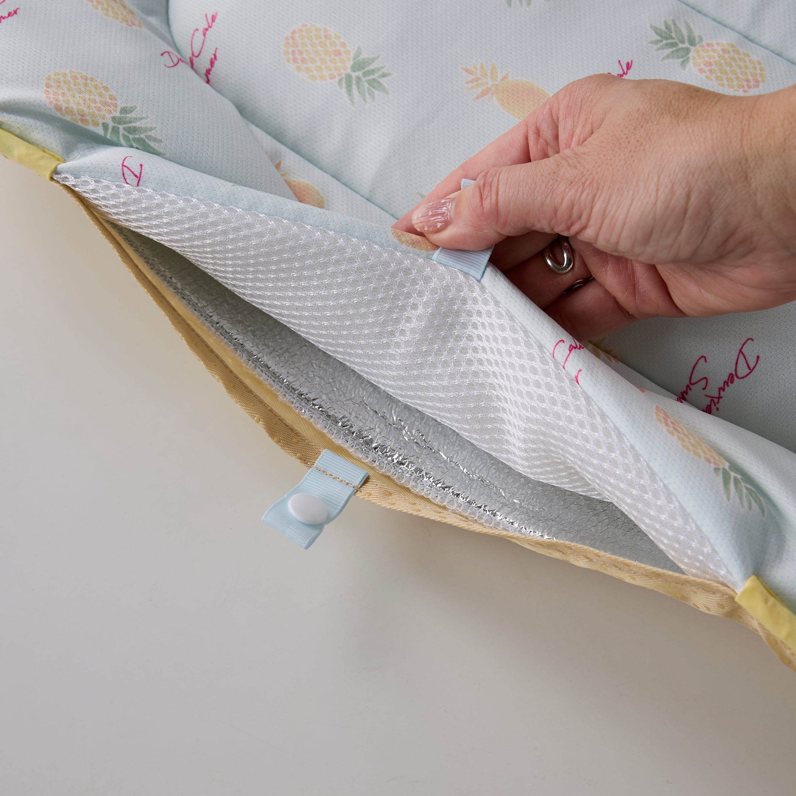 間に断熱用のアルミシートが入っており、保冷剤が入れられます。