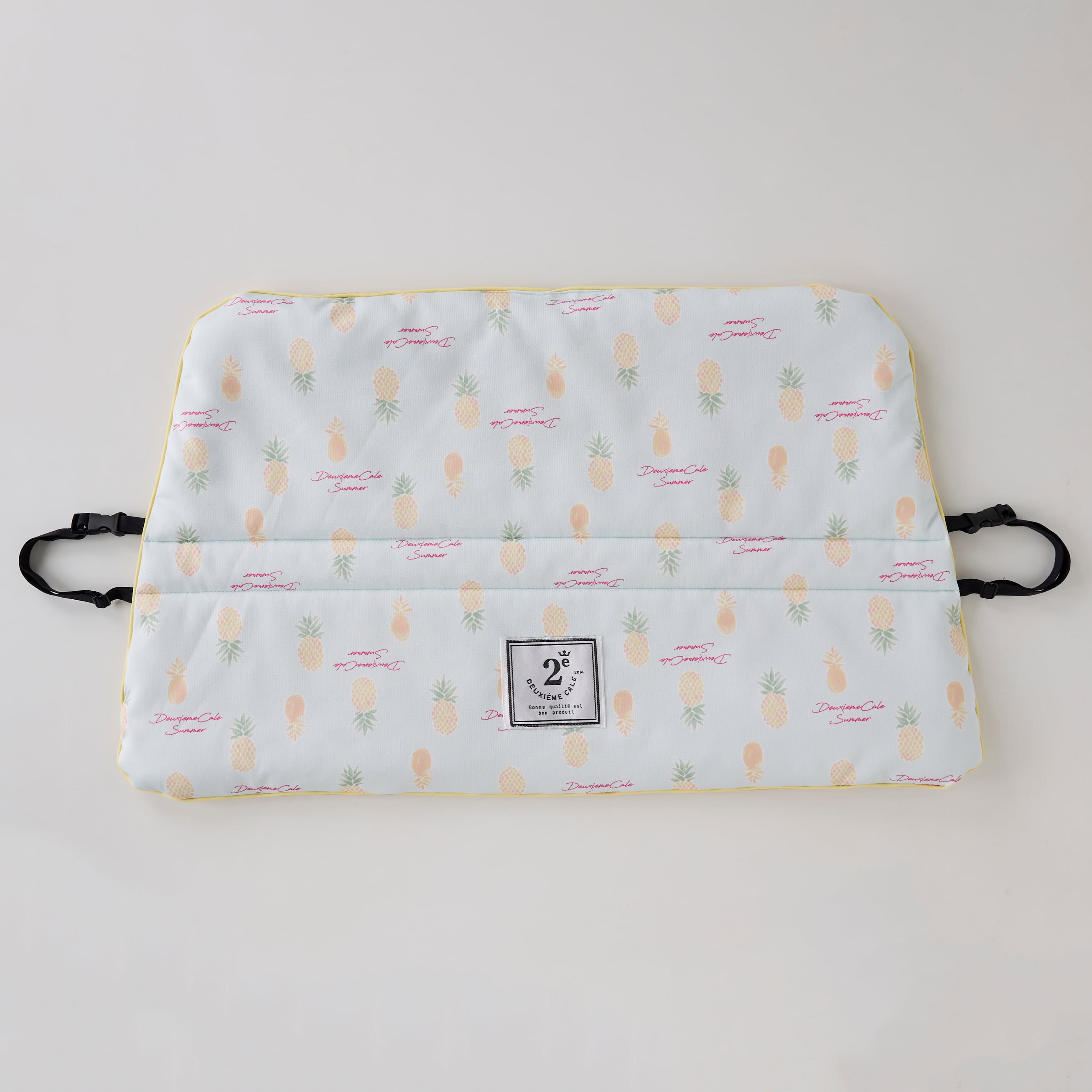 裏側は滑り止め付き、両側に固定用のテープが付いています。