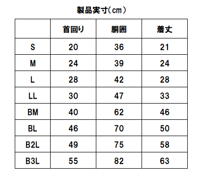 大型犬サイズはBから始まるサイズ表示です。